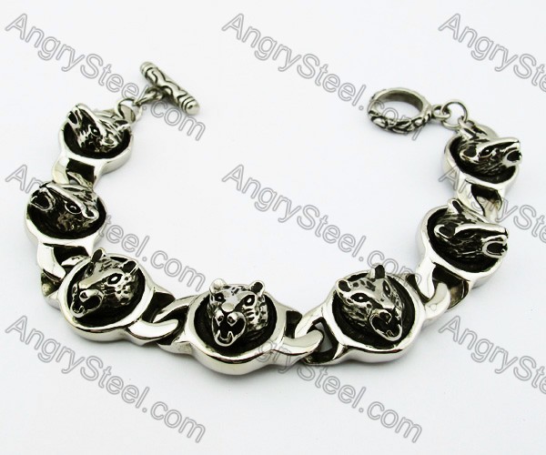 9" length Antique Stainless Steel Casting 7pcs Leopard Bracelets - KJB200097