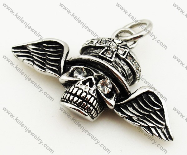Inlay Stones Hat Wings Skull Biker Pendant - KJP090316