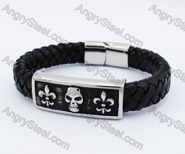 Steel Fleur De Lis Leather Bracelet KJB550169 Price:$6.22