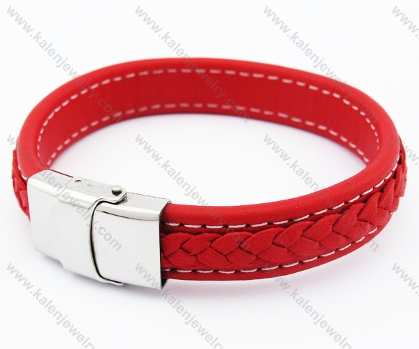 Stainless Steel Red Leather Bracelet - KJB050383 Price:$4.76