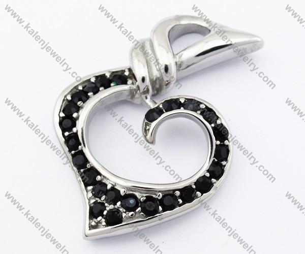 Stainless Steel Overlay Black Stone Heart Pendant - KJP090382