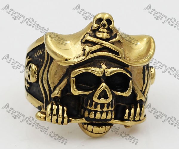 Big Gold Steel Skull Ring KJR350552 Price:$3.77