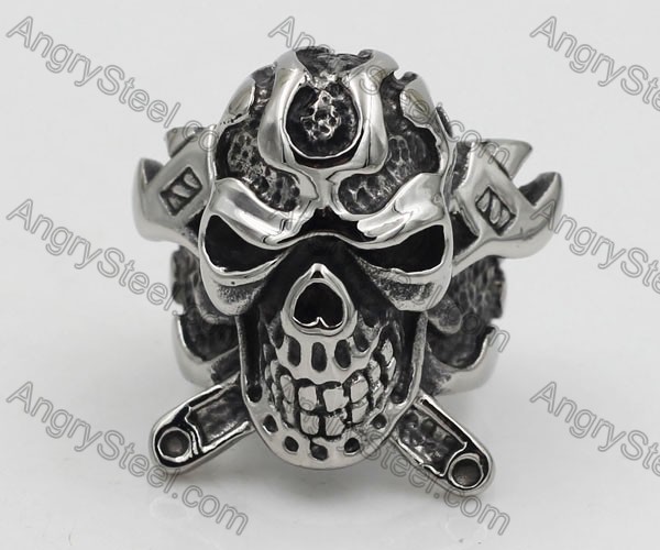 Blue Eyes Black Steel Skull Ring KJR010502 Price:$2.89