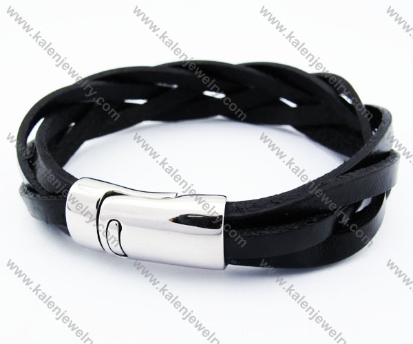 Stainless Steel Black Leather Bracelet - KJB030137