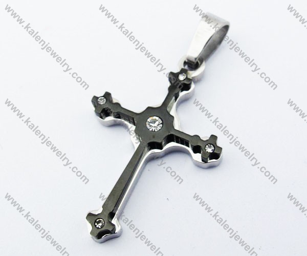 Stainless Steel Inlay Zircon Stone Cross Pendant - KJP051080