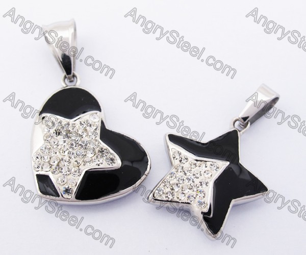 Stainless Steel Overlay Rhinestones Couple Pendants KJP051199