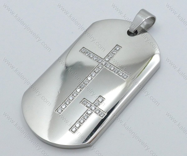 Smooth Steel Inlay Rhinestones Tag Pendant - KJP050126