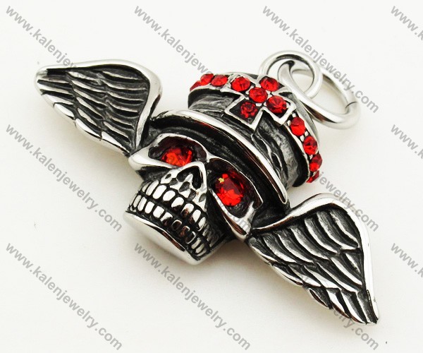 Inlay Red Stones Hat Wings Skull Biker Pendant - KJP090315