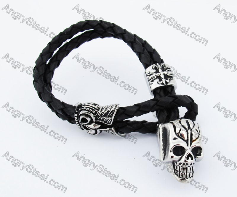 Black Leather Skull Bracelet KJB170201-1 Price:$8.44