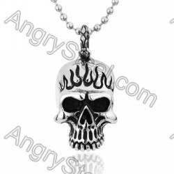 Stainless Steel Flames Skull Pendant - KJP350115 Price:$6.15