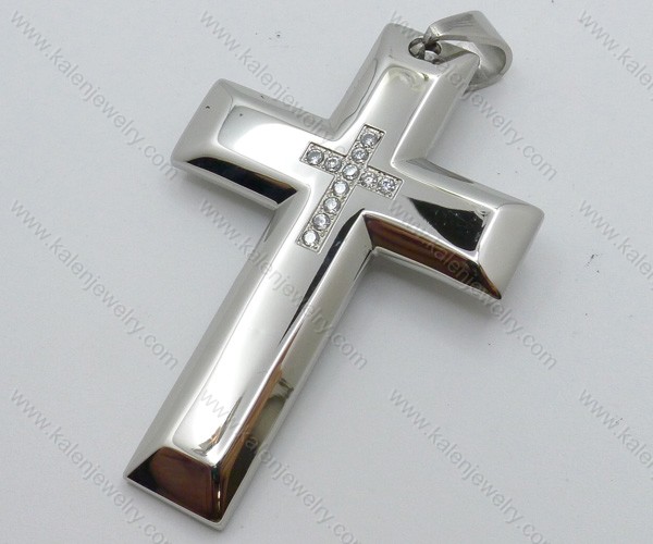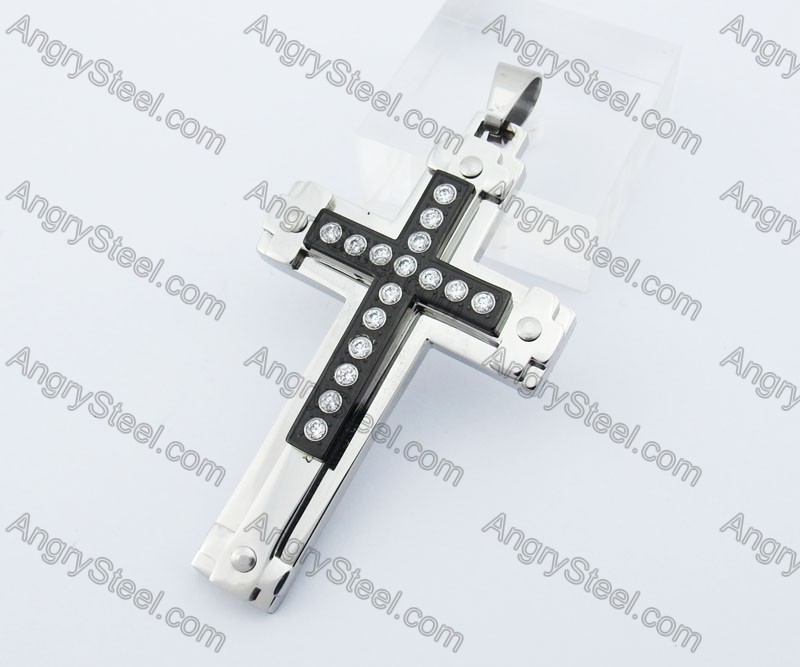 Smooth Stainless Steel Stones Cross Pendant - KJP050536