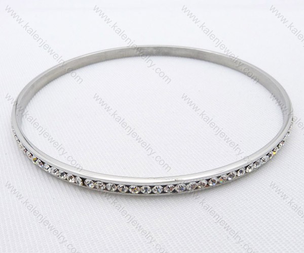 Black line Stainless Clear Zircon Steel Stone Bangles with Silver Plated - KJB050036