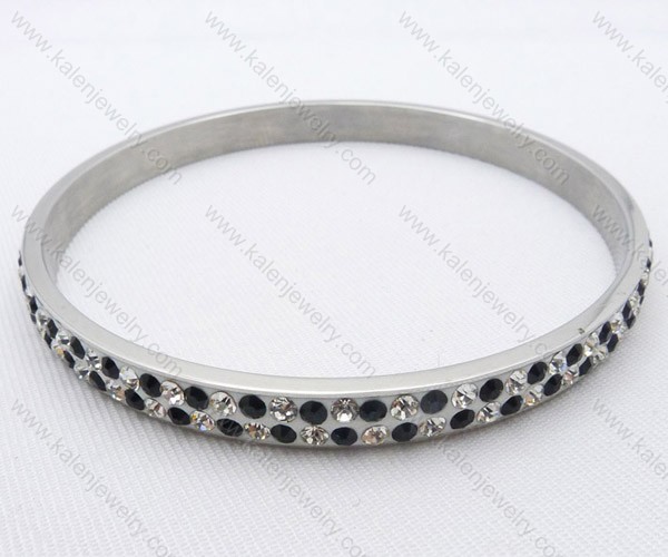 Wholesale Black & white crystal Stainless Steel Bangles- KJB050033