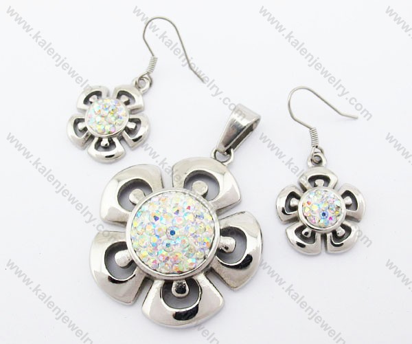 Rhinestones Flower Pendant & Earrings Jewelry Set - KJS410029