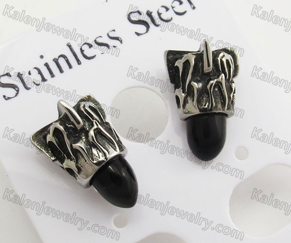 Stainless Steel Black Stone Skull Biker Earrings KJE690009