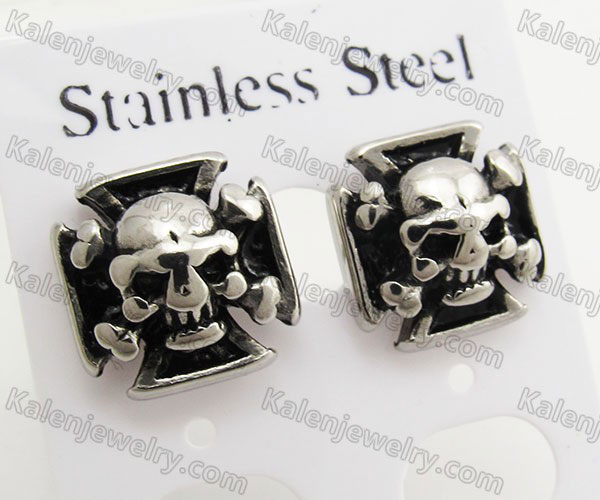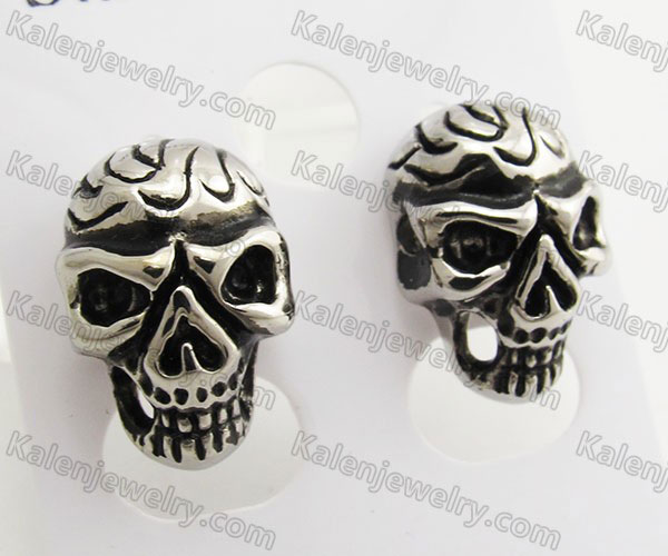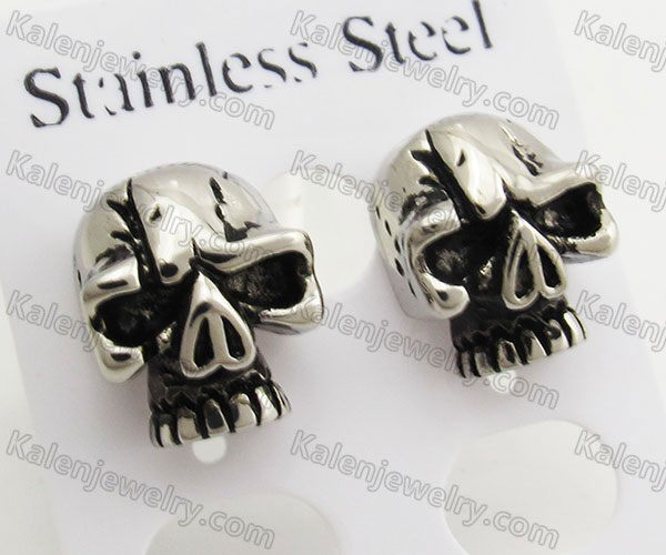 Steel Inlay Stone Eyes Skull Ear Stud KJE690006