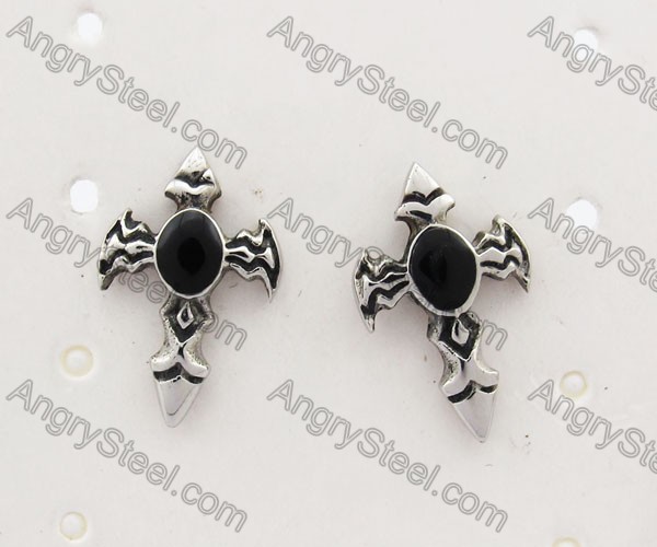 Vintage Stainless Steel Stone Cross Ear Stud KJE500004