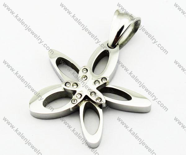 Stainless Steel Silver Flower Overlay Zircon Pendant - KJP160036