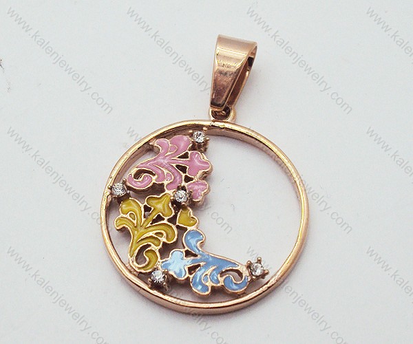 Stainless Steel Rose Gold Plating Filigree Round Flower Pendants - KJP090022