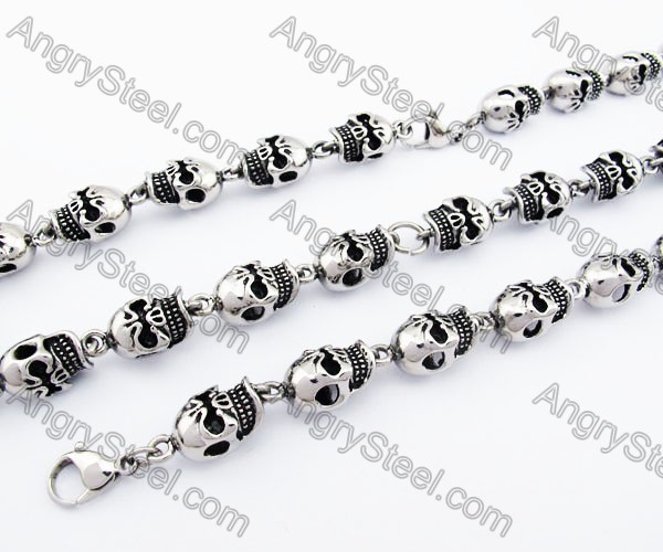 Stainless Steel Necklace & Bracelet Men's Skull Jewelry Set - KJS170001